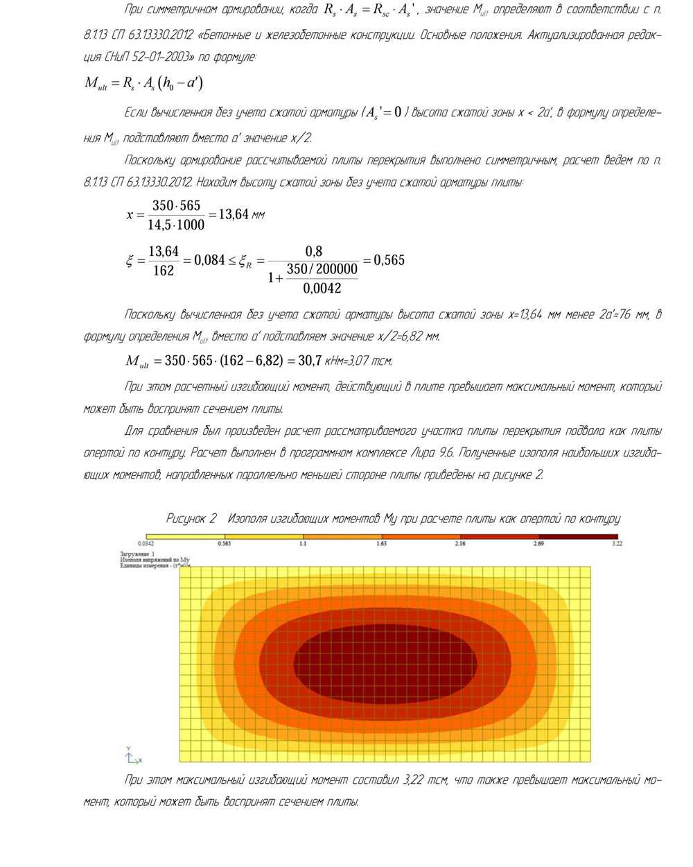 При расчете монолитной железобетонной плиты перекрытия подвала над комнатой отдыха на принятую нагрузку, расчетные изгибающие моменты превышают предельный момент, который может быть воспринят сечением плиты.