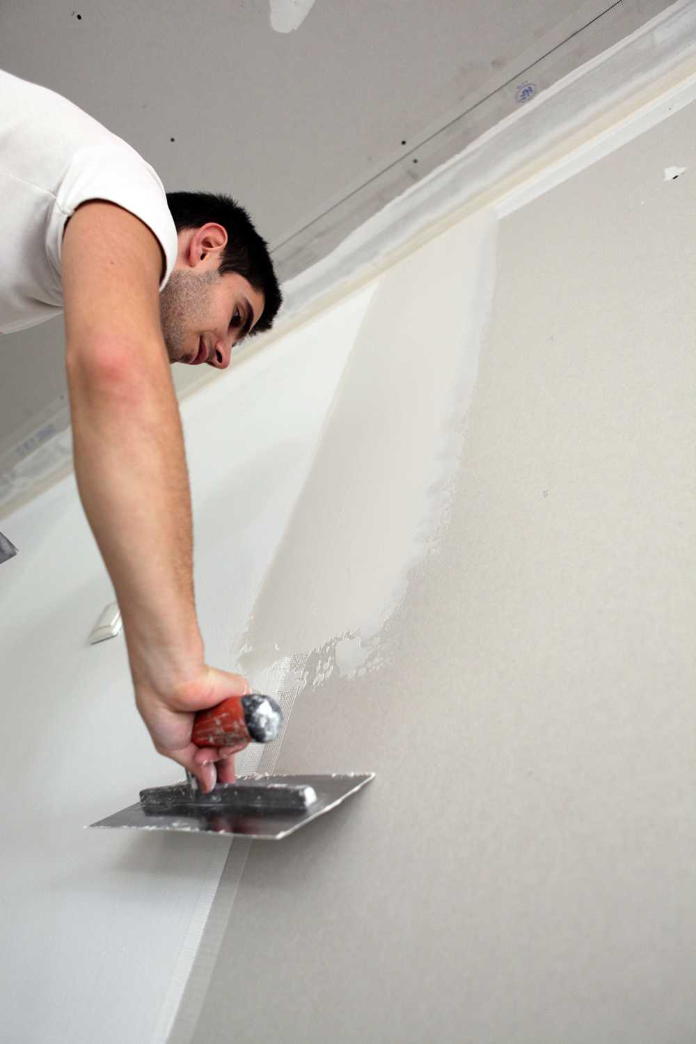 Для заделки швов на гипсокартонных конструкциях и для устранения небольших повреждений, а также для нанесения шпаклевки на всю поверхность, можно применить стартовую шпаклевку – это крупнозернистая смесь, которая используется для первичной обработки поверхности.