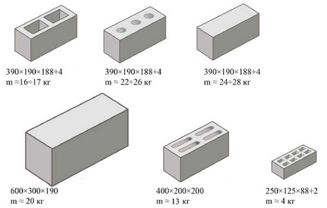 Масса керамзитобетона зависит от нескольких факторов, главные из которых – плотность и марка бетона. Чем больше плотность, тем больше вес конструкции. Ниже приведена таблица веса блоков 200х200х400 мм по марке бетона.