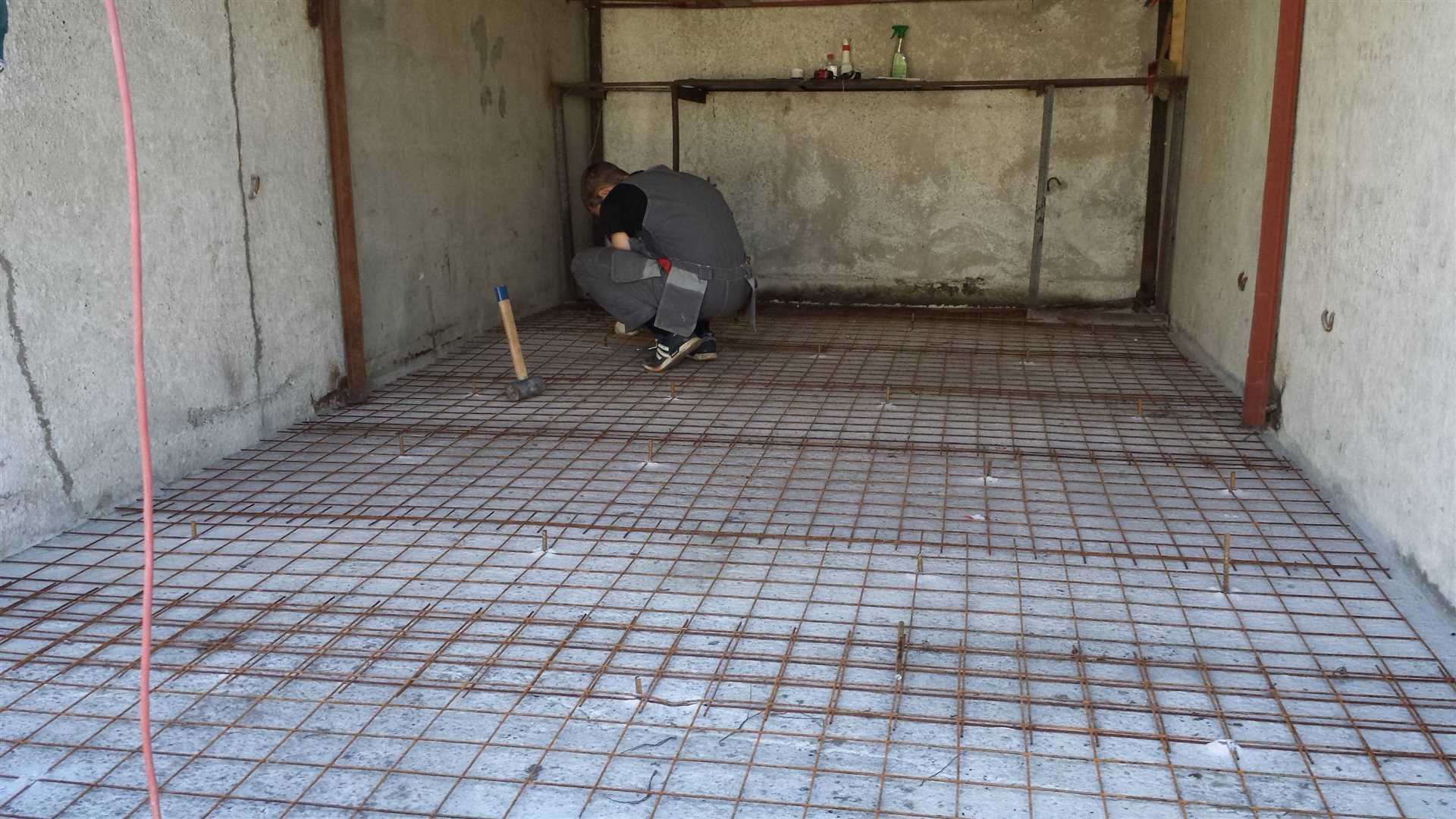 Если расколы на полу длинные и глубокие, то в основании укладывают арматурные прутья. Штробы прорезают поперек выемки. Их глубина составляет 1 см. Металл должен заходить на целый монолит на 7-10 см с обеих сторон. Перед заливкой бетонного раствора в трещины на полу в гараже, их очищают от пыли, фрагментов наполнителя, отколотых кусков. Дополнительно обработанное место промывают водой под напором.