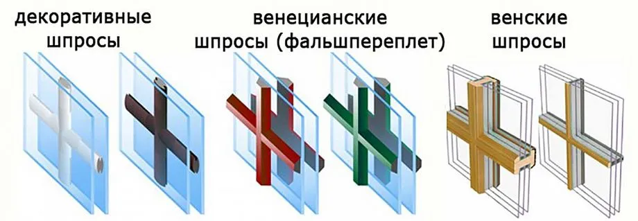 Также решетки внутри стеклопакетов могут иметь сугубо декоративные функции, и они выполнены из шпросов, специальных планок из пластика или алюминия, которые могут быть узкими, широкими, а также изогнутыми параллельно плоскости окна. Шпросы могут быть конструктивными — они необходимы в тех случаях, когда стеклопакет имеет слишком большую площадь и декоративными, где такие решетки украшают интерьер и экстерьер вашего дома. В настоящее время самой большой популярностью пользуются именно декоративные шпросы.