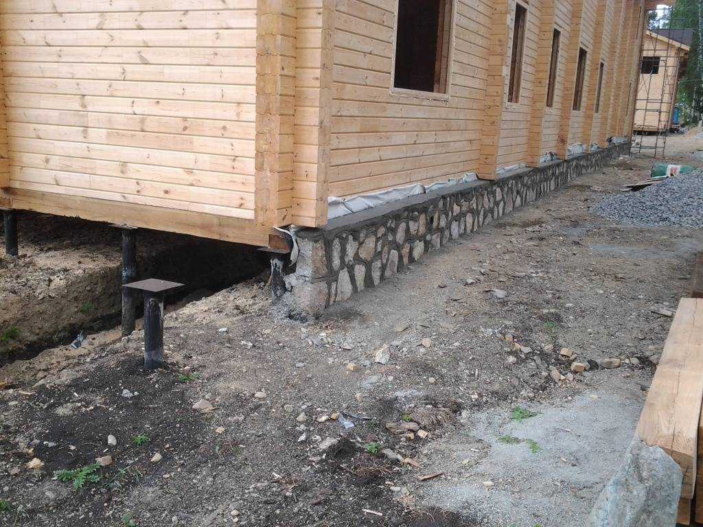 Фото 14. Свайный фундамент с обвязкой из деревянных балок
