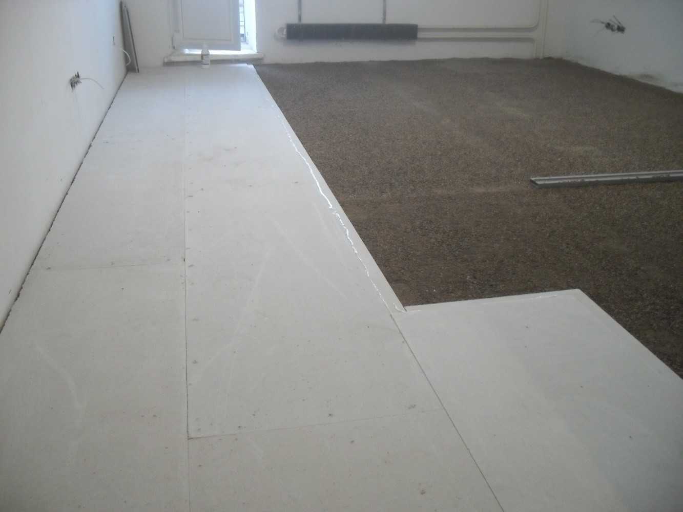 Малый слой засыпки вызывает деформацию листового материала. Значительные нагрузки он не в состоянии выдержать. Из-за этого сухую стяжку нельзя обустраивать в качестве основания под укладку керамической плитки.