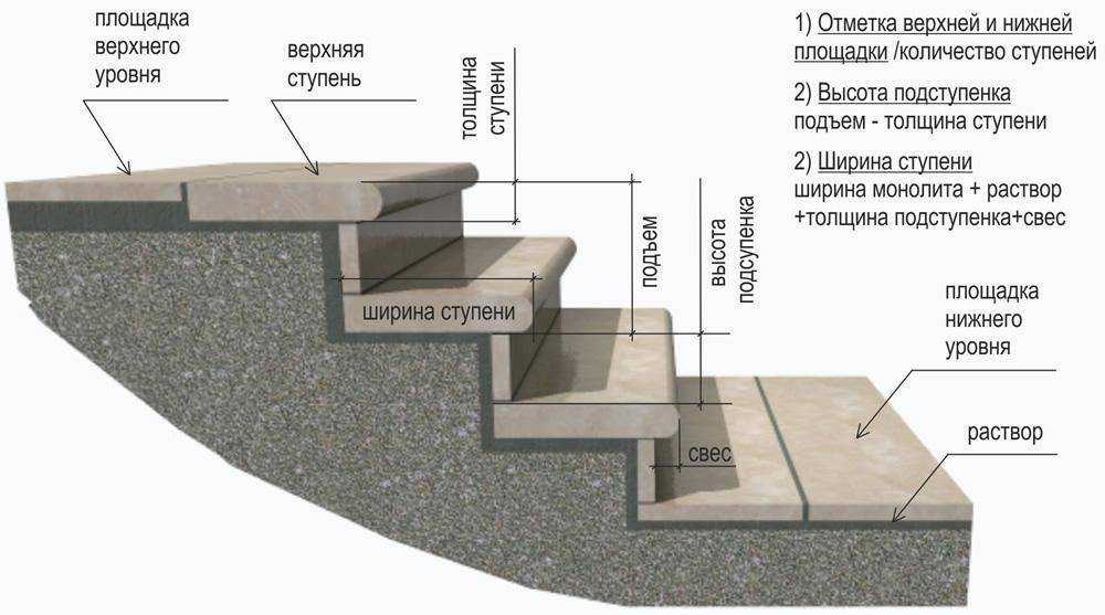 Следует определиться с углом, удобным шагом подъема, замерить, какова будет толщина, просчитать количество и высоту ступеней. При строительстве необходимо придерживаться ГОСТ 13015-2012 «Изделия бетонные и железобетонные для строительства», ГОСТ 9818-2015 «Марши и площадки лестниц железобетонные».