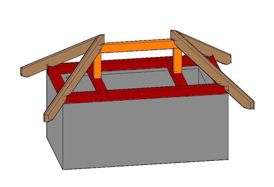 Схема устройства стропильной системы четырехскатной вальмовой крыши