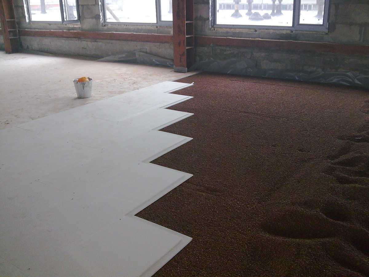 Под понятием «насыпной пол» подразумевается применение современного материала – сухой стяжки.