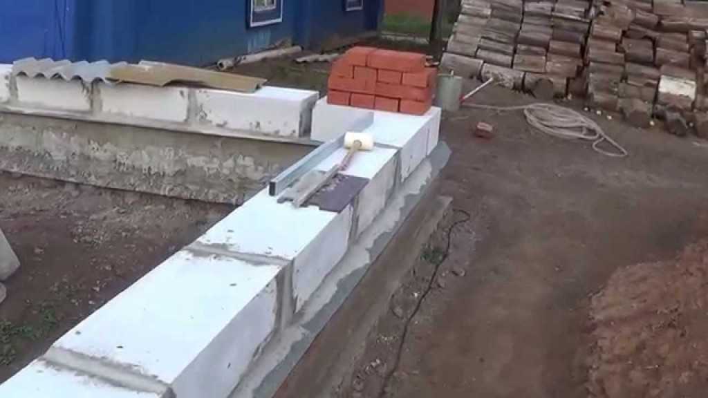 - Чтобы отделать керамитом нужно в стене, промеж блоков, зафиксировать пару прутьев нетолстой арматуры, это нужно, чтобы объединить стену с керамикой, но в первую очередь необходимо с помощью гвоздей поставить плиты из пенополистирола.