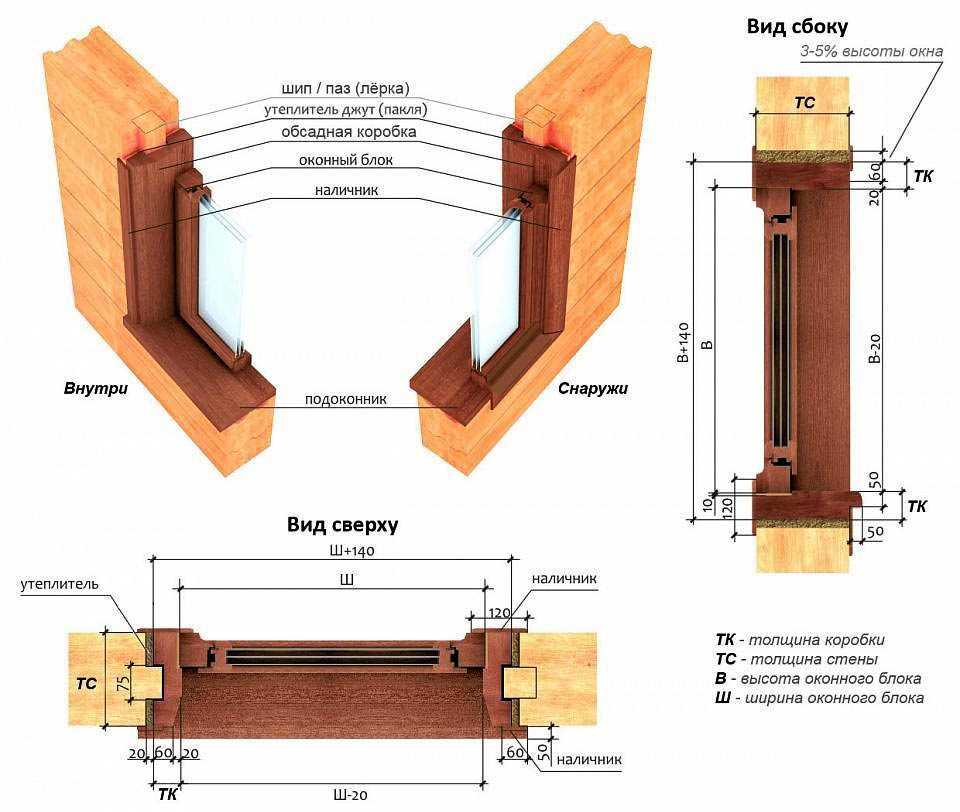 Правильно подобранные размеры оконного проема — залог успешной установки окна в доме. Оптимальным расстоянием от пола до подоконника является 80-90 см. Как правило, подоконник делают чуть выше столешницы. При монтаже тщательно следите за размерами проемов. Давайте рассмотрим, как правильно делать обсадную коробку и устанавливать окна в деревянном доме.