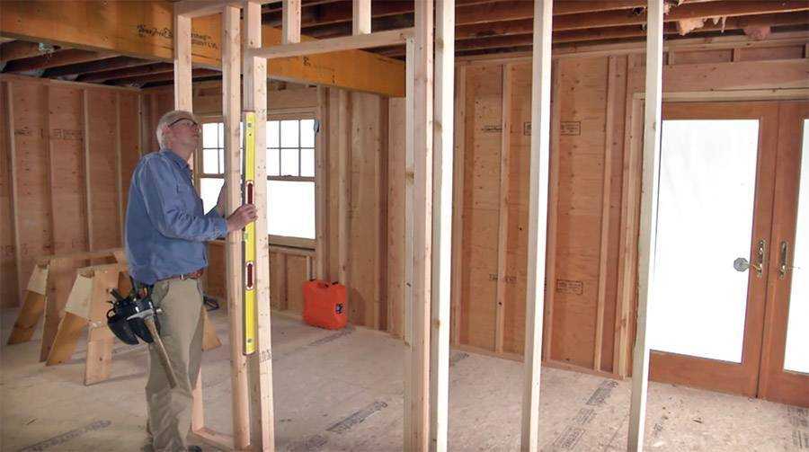 Также необходимо следить, чтобы обвязка каркаса была расположена строго горизонтально. Это лучше делать строительным уровнем. При наличии отклонений под обвязку необходимо подложить обрезки любых пиломатериалов. Пузырек в колбе должен показывать горизонтальное положение.