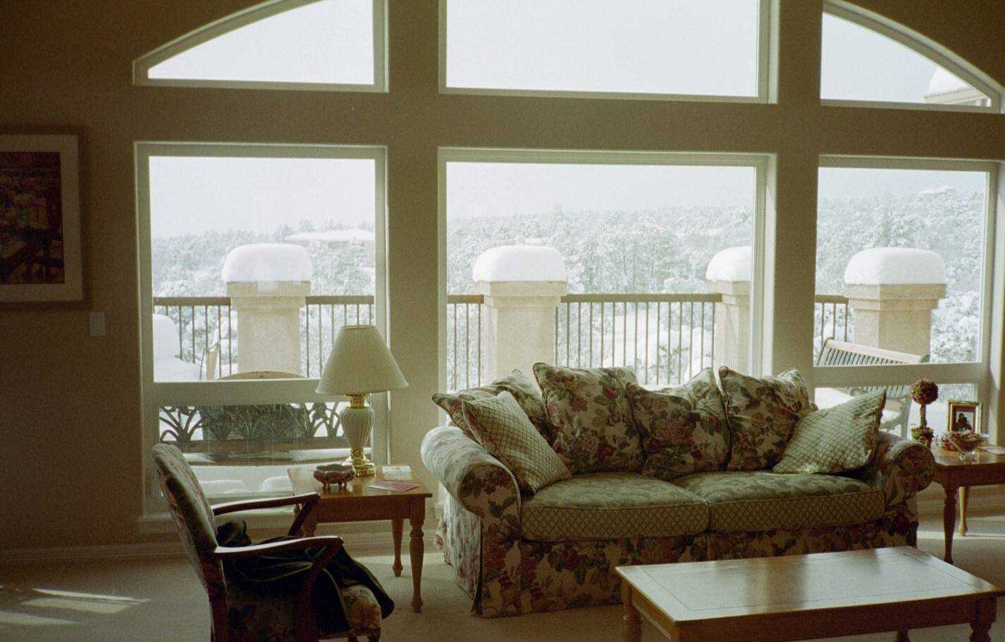 В теплое время года в комнате, в которой есть панорамные окна, может быть достаточно жарко, в особенности если проемы выходят на солнечную сторону. При этом обивка мебели, покрытия стен, потолка и пола могут выцветать.