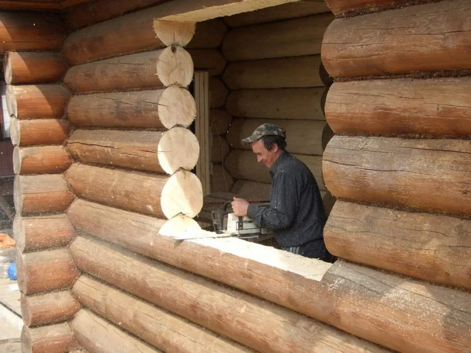 Для подготовки проема нужно очертить его карандашом, а затем выпилить цепной пилой. Убедившись в ровности поверхности, нужно нанести защитную пропитку, которая не позволит древесине испортиться от влаги.