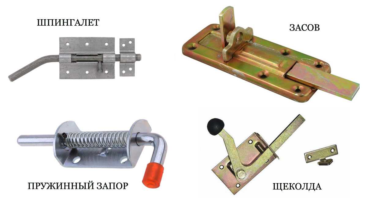 Замки, защелки и крепления типа «шпингалет». Подходит для небольших и съемных конструкций;