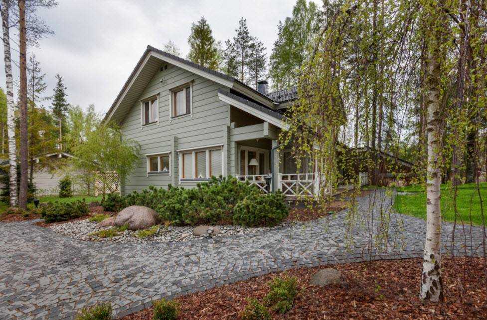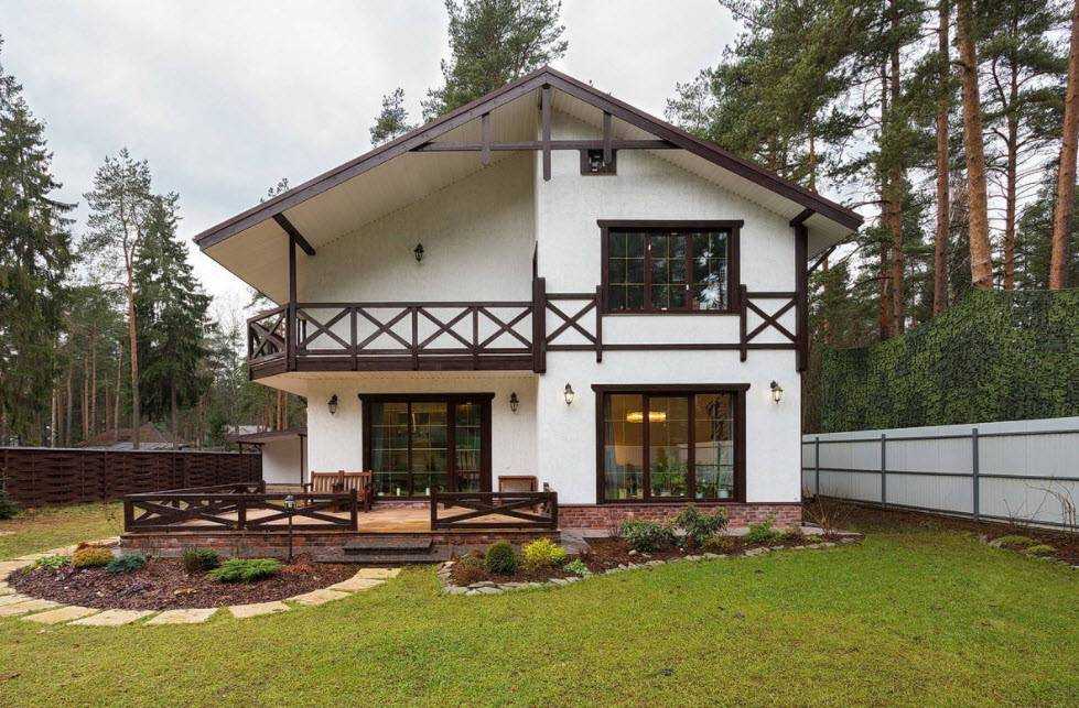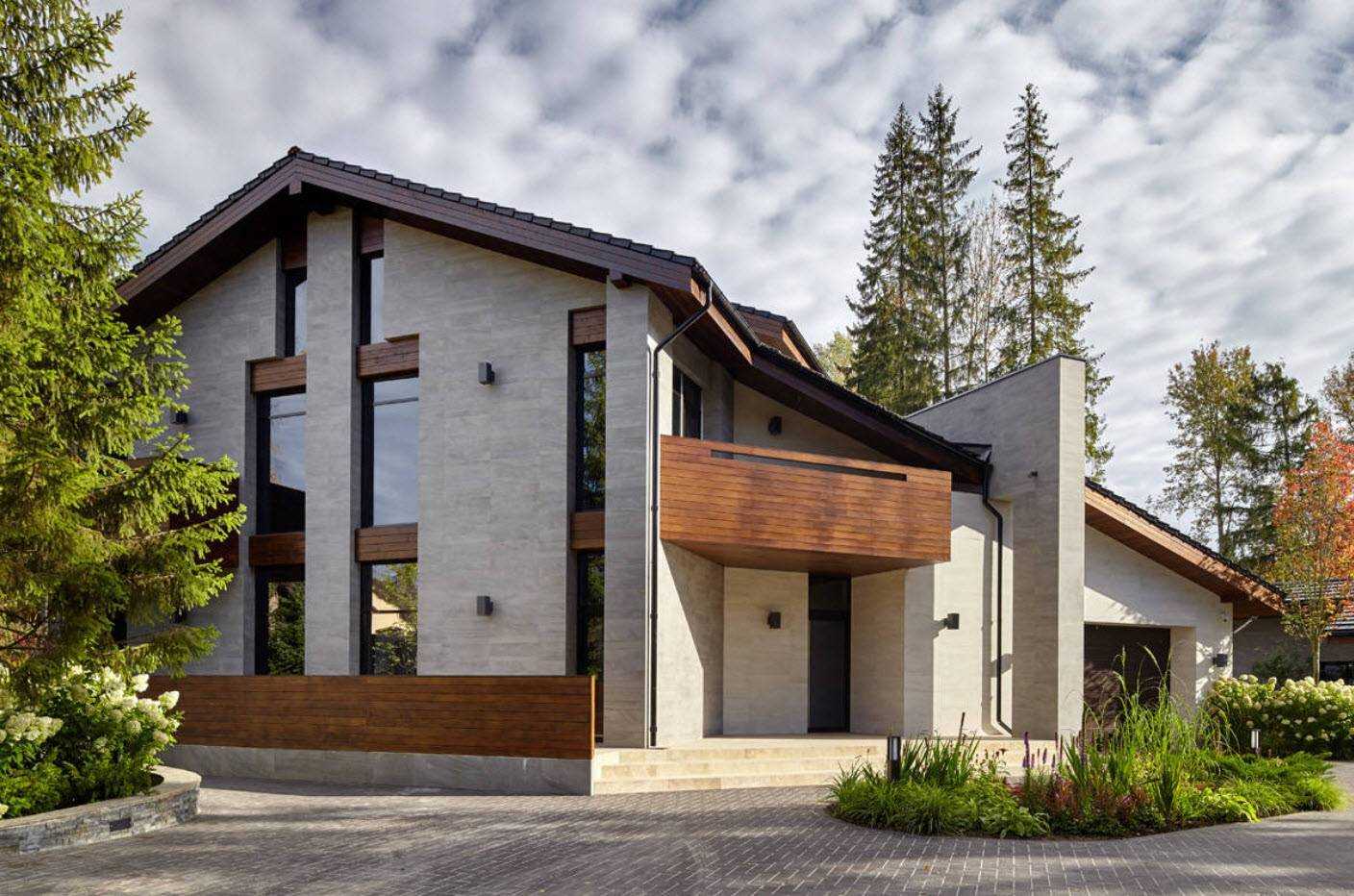 - Ломаная мансардная крыша придает всему строению презентабельный вид, экстерьер выглядит роскошно и оригинально.