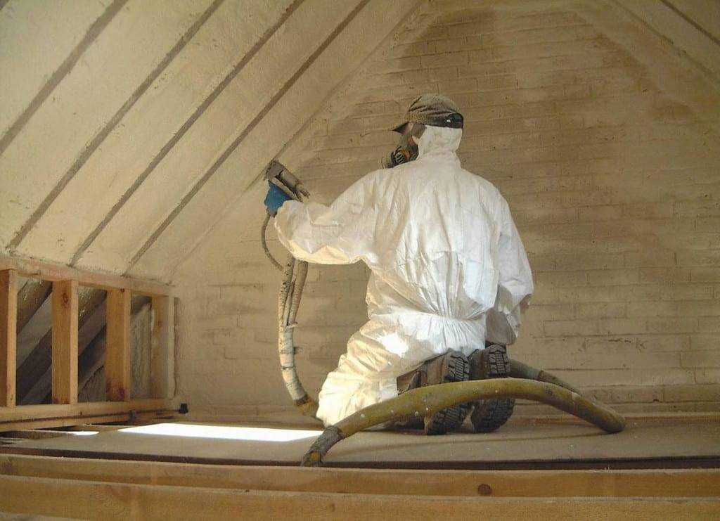 Нанесение пенополиуретана с помощью специальной установки высокого давления