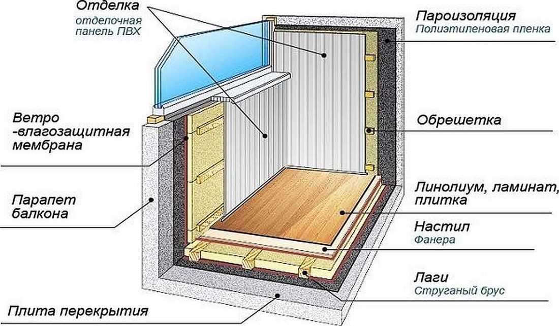 Рассмотрим технику утепления для каждого из элементов балконной конструкции в отдельности.