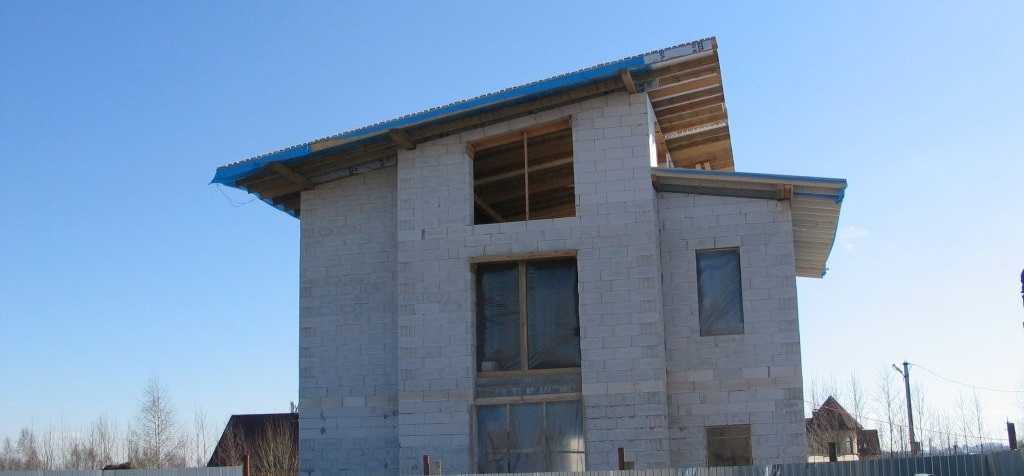 Фотоотчет со стройки: односкатная крыша на доме из газобетона