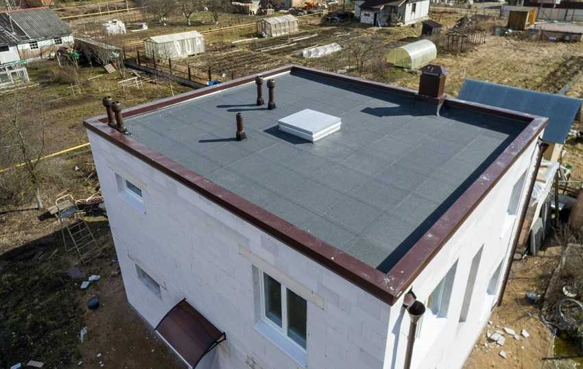 - Конструкция плоской крыши предусматривает отсутствие стропильной системы, что позволяет значительно сэкономить на строительных материалах.