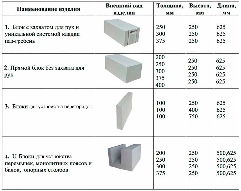 Помимо стандартных блоков с прямолинейными гранями некоторые современные заводы выпускают блоки с захватами для рук с обеих сторон.
