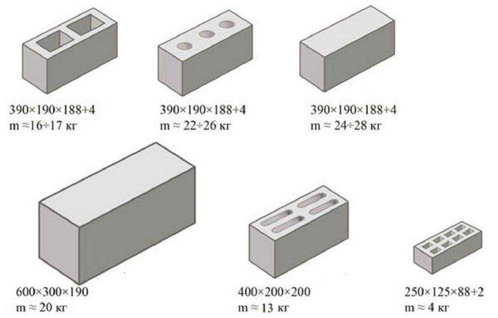 Вес пескоблоков в зависимости от их размера варьируется в пределах 8-40 кг. При этом размеры пескоблоков могут быть различными: