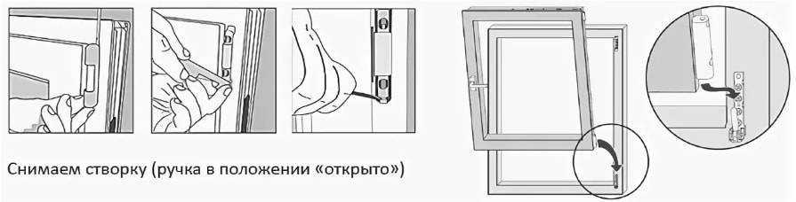 Перед тем как поменять уплотнитель на окнах ПВХ, нужно демонтировать створку. Процесс демонтажа несложный и состоит из следующих этапов: