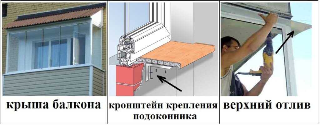 Перед монтажом окон проверяется на пригодность старый навес. Если его состояние удовлетворительное, можно ограничиться мероприятиями по укреплению элемента. Если же надежность козырька сомнительна, или он вовсе отсутствует, обустраивается новый.