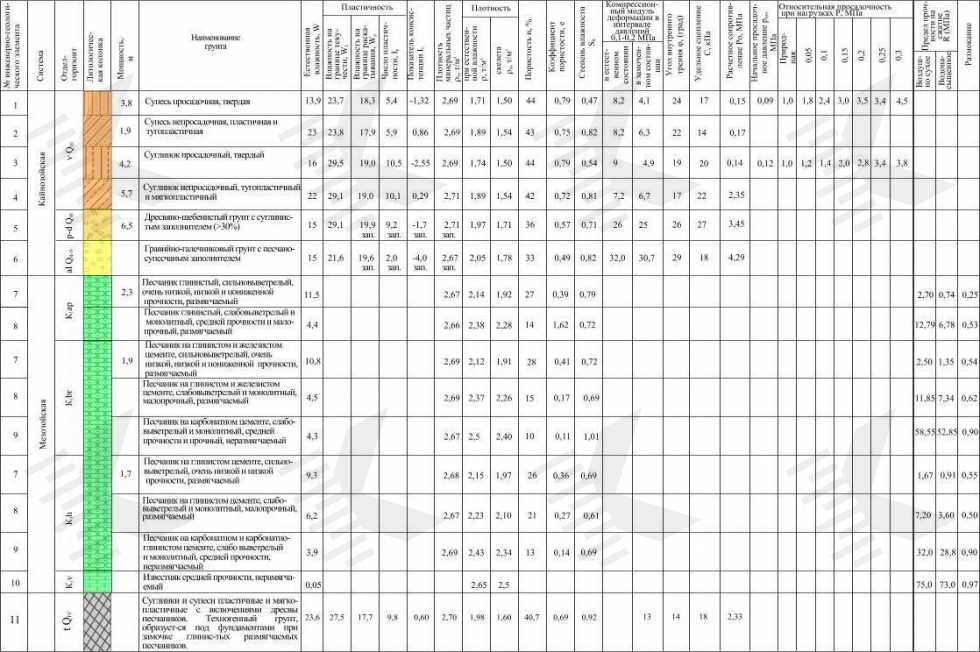 - Получение полной информации о слоях грунтового основания (инженерно-геологических элементах), залегаемых под пятном застройки в пределах сжимаемой толщи.