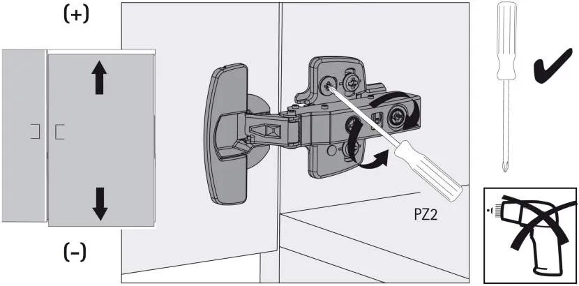 Регулировка высоты расположения двери шкафаИсточник hettich.com