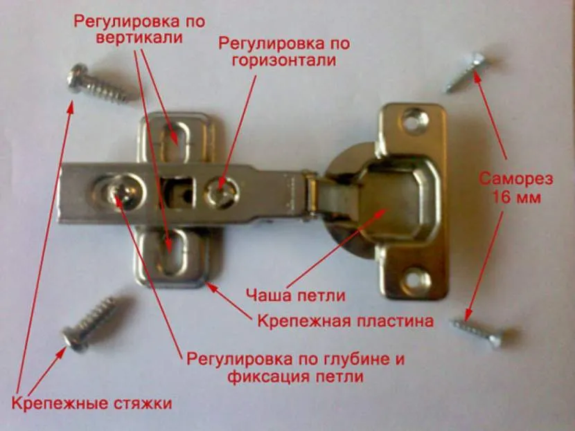 Расположение всех винтов петли шкафаИсточник vsecuplu.ru