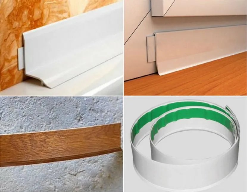 Пластиковые притворные планки – универсальный вариант, который подходит для внешней и внутренней эксплуатации. Элементы производят в форме жестких планок и эластичных лент. Практичный материал устойчив к воздействию влаги и морозам. Из недостатков отмечают только ослабление клеевой основы в жару и пожелтение поверхности от солнца.