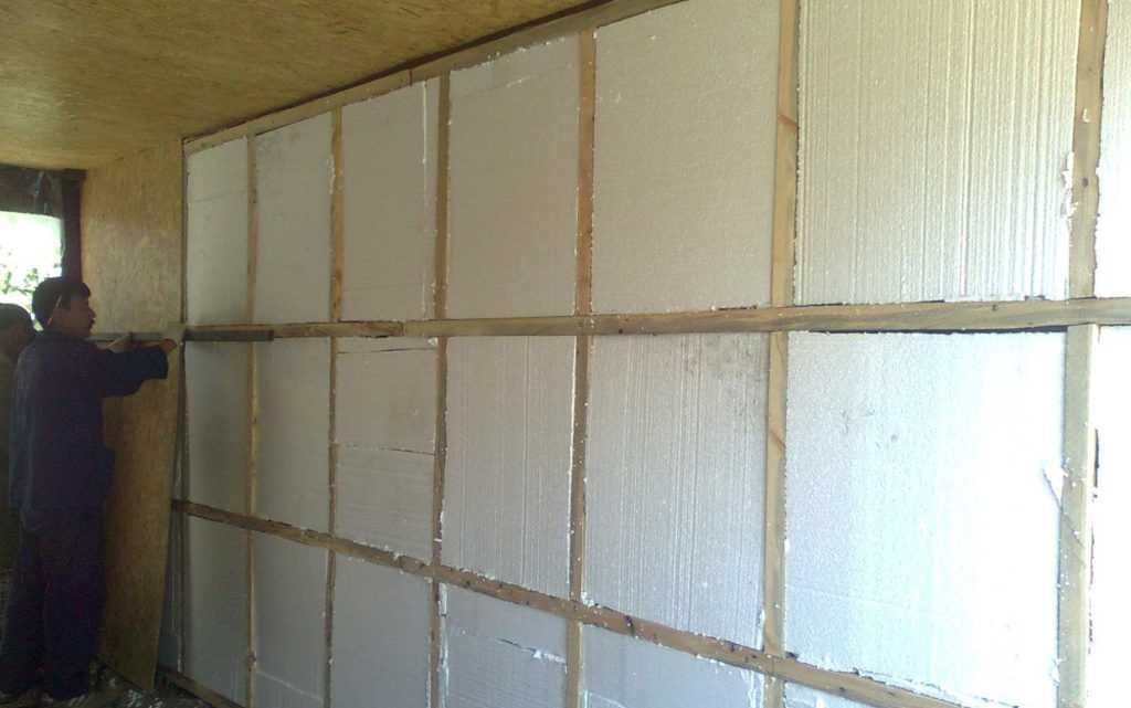 Утепление стен изнутри пенополистиролом или утепление стен изнутри пеноплексом. По сути, одно и то же, т.к. пеноплекс — это одно из названий экструзионного пенополистирола.